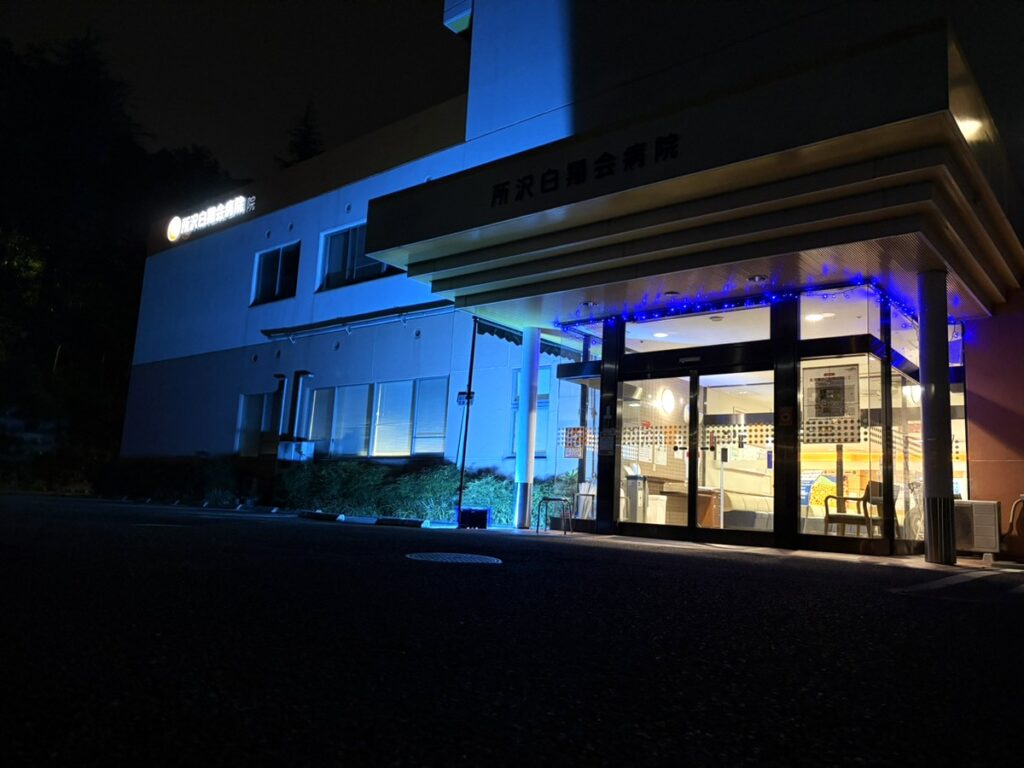 10 月20日は「世界骨粗鬆症デー」に制定されており、啓発活動の一環でブルーライトアップが各地で行われています。当院でも、10月20 日に一部病院をブルーにライトアップを行いました。